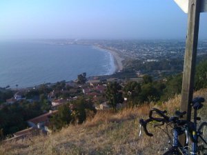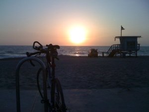 その後、ゲットしたプレゼントを大切に自宅に持ち帰って、当然ながら自分の自転車にて、いつもの通りパロスバーデス経由サンペドロのトレーニングライドを開始。現実としてはこの自転車しかない訳ですので、改めて乗り心地を確認しながら走りだすと、先ほどは自然にエアロポジションになったのに、自分のZ80ではやっぱりロードバイクにDHバーを取り付けただけという感じで、サドルにベッタリすわって腕だけ前にでしているエアロポジションまがいであることに気付きました。先ほどのB2はハンドルポジションも低く、サドルも高いので、エアロポジションで乗ることが前提となっています。コース途中でしたが、なんとかエアロポジションに近づけることはできないかと考えた結果、サドルを2cmほど高くしたところ、体感的には視点が10cmは高くなった感じで、今までとは違う乗り心地となりました。サドルの高さを含め、購入時にセッティングしてもらってから自分なりの調整を全くしていなかったので、新鮮な気持ちで残り10マイルを新車購入時のように初々しい気持ちで走ることができました。