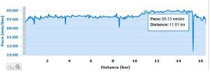 その後、ペースを5分00秒~10秒にアップし、5Kmほど並走。