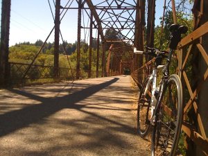 (Swim会場であるRussian Riverにかかる古い橋で、Bikeコースに含まれています。)