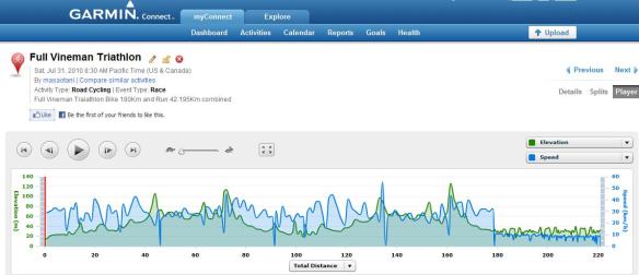 先日から時々ガーミンFR305で計測したトレーニングデーターを開示させて頂いておりますが、予想以上に多くの方が興味を示して頂き、そのデーターを見て頂いているようですので、昨年出走した私の初フルディスタンスVinemanのデータを実例として少し説明させて頂きます。