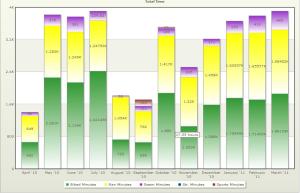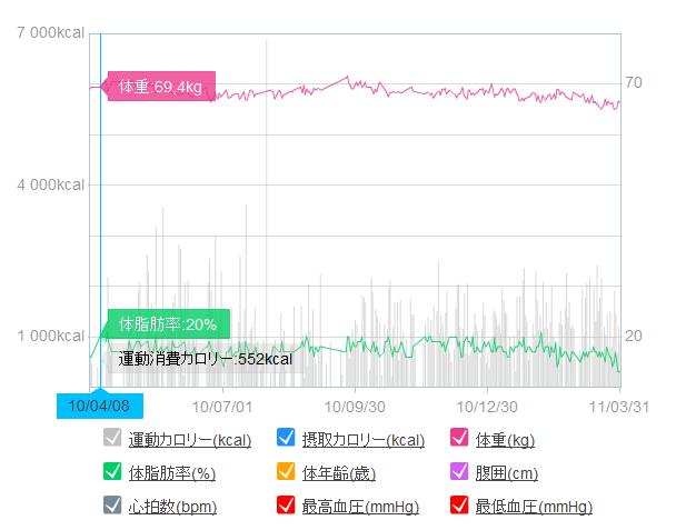 (そんなに大したことないやん、、、)下のグラフは昨年3月からの月間トレーニングの時間です、明らかにBike(緑), Run(黄色) に偏ってしまって、本来最も強化すべきSwim(紫)が一年間ほぼ放置状態となっています。これが、Swimが伸びないという要因であることは間違いありません。また下のグラフは一年間の体重と体脂肪の推移です。体重は70Kgを切る値を維持し、年初から徐々に65kgまで下降、体脂肪も同様に18% ぐらから14%位に絞ること成功。