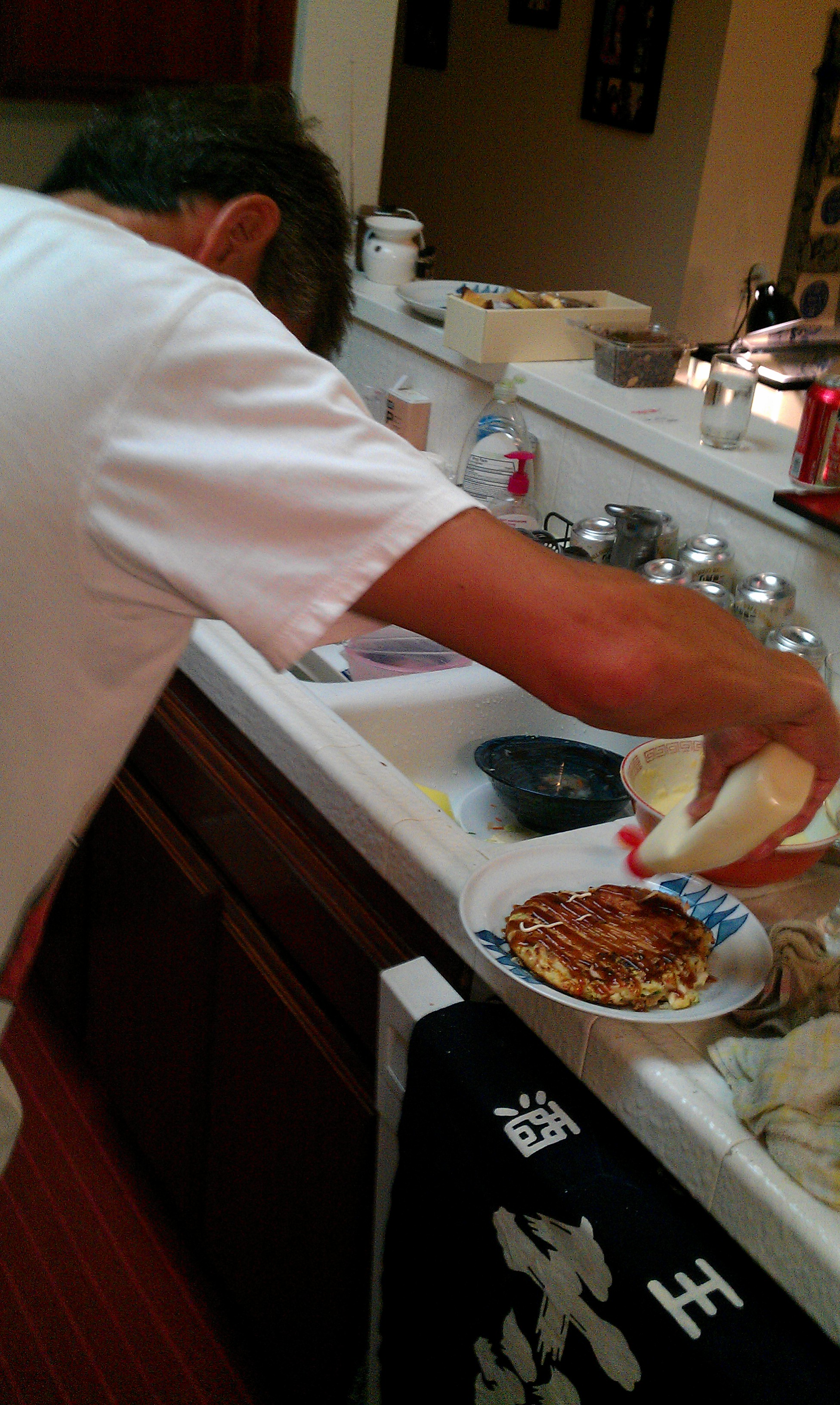 写真は私のぬるいお好み焼きのに対し、ついに業を煮やし、腕を奮うHiroshiさんの勇姿。