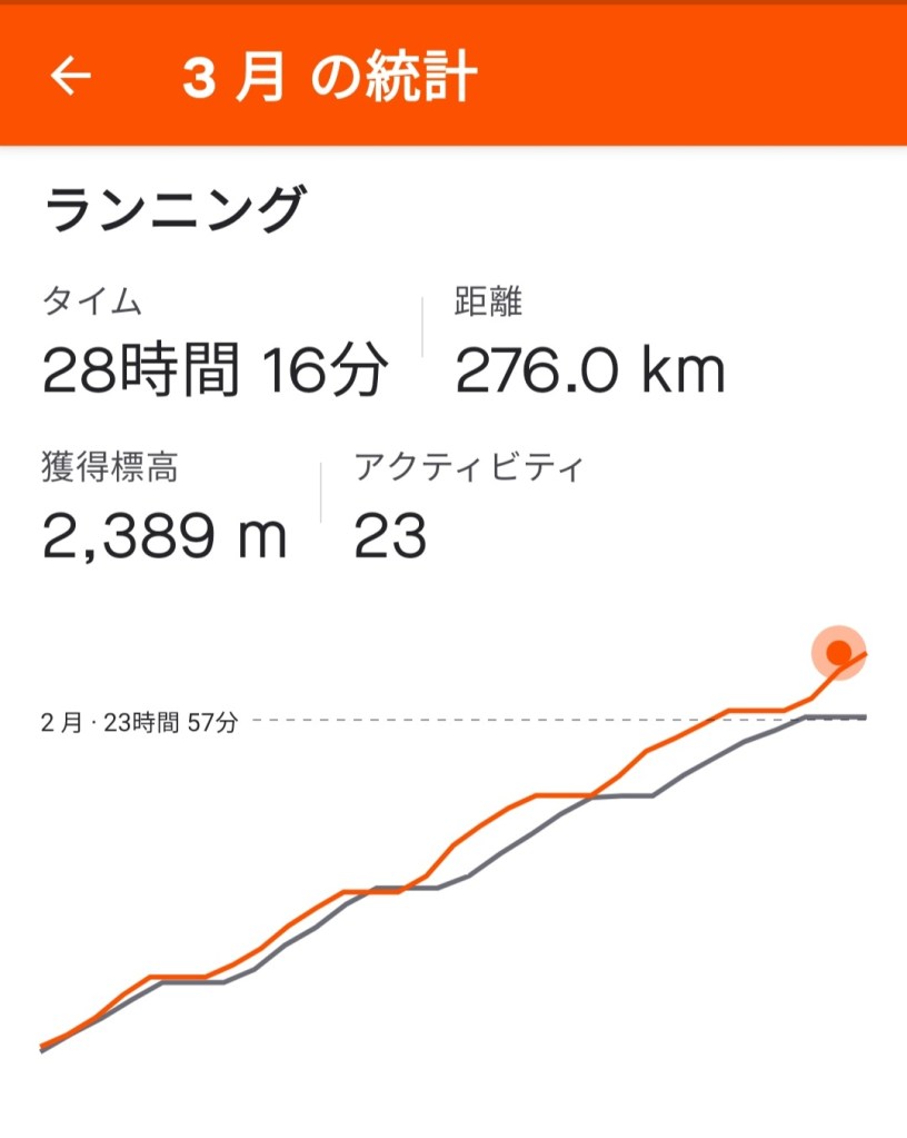 ランニング 28時間16分 276Km