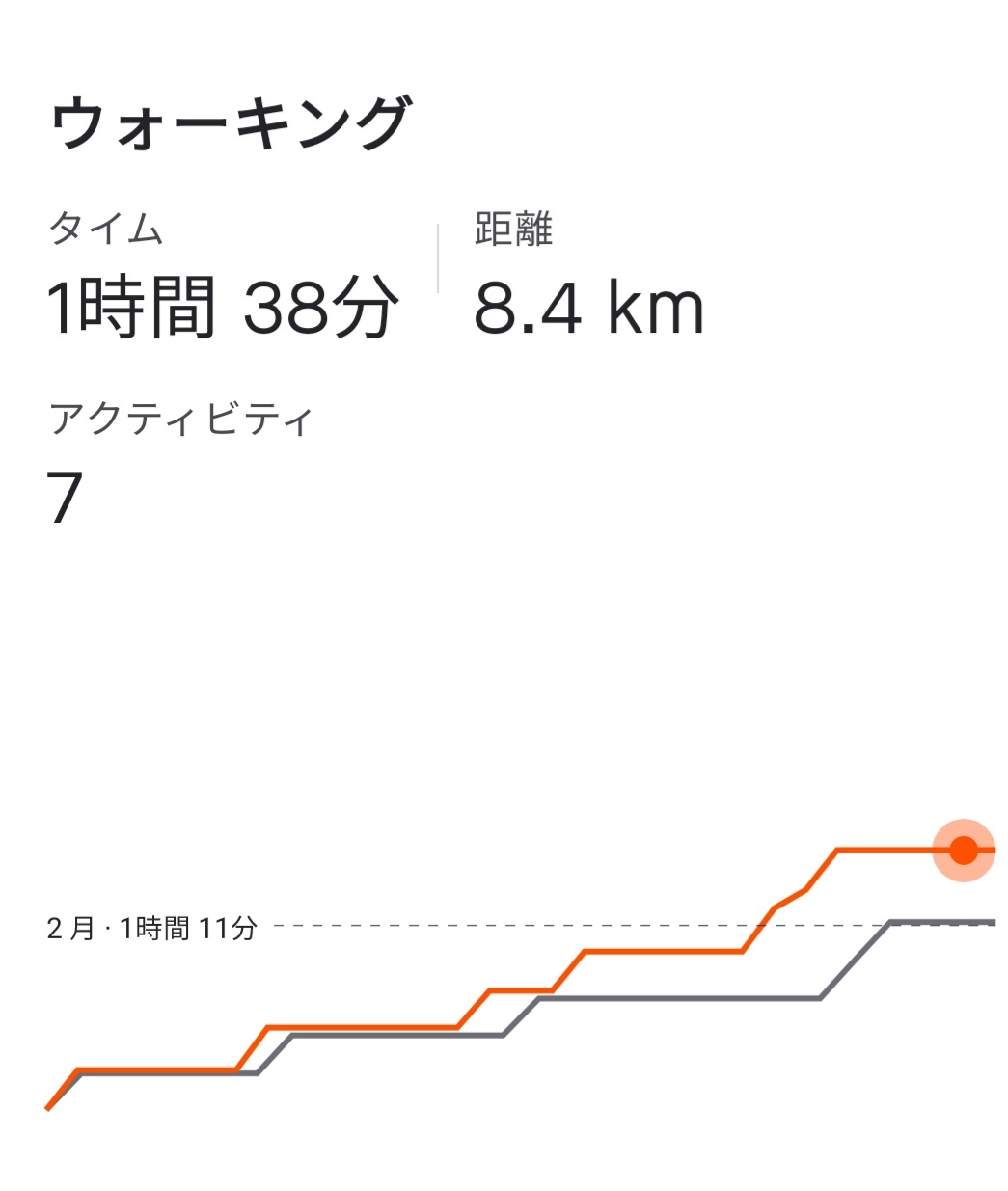 ウォーキング 1時間38分 8.4Km