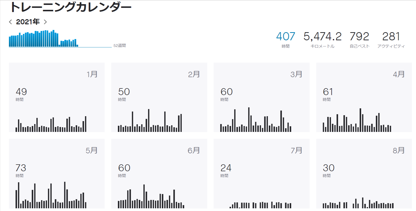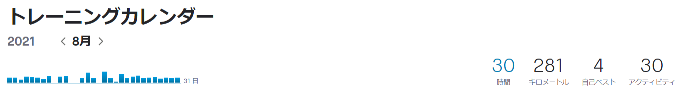 日本に戻り2ヶ月。猛暑と言うよりも長雨に悩まされましたが、適当な休足日となり、その結果、Runのみのメニューで、30時間、281Kmとなりました。