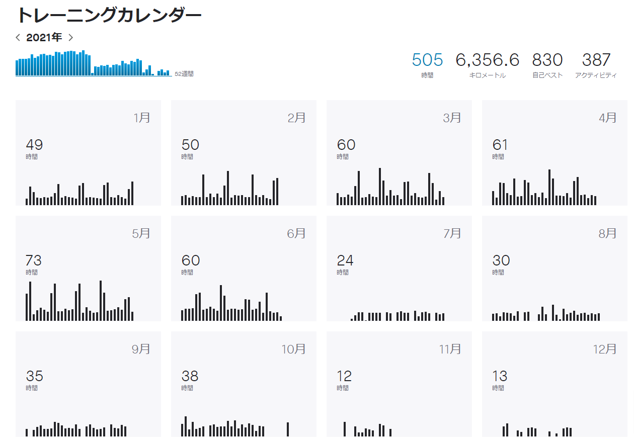 2021年も残すも僅か、色々あった今年を振り返ってみたいと思います。表示するデーターはトレーニング記録の元データーであるStrava(月額課金ユーザです)からとなります。
