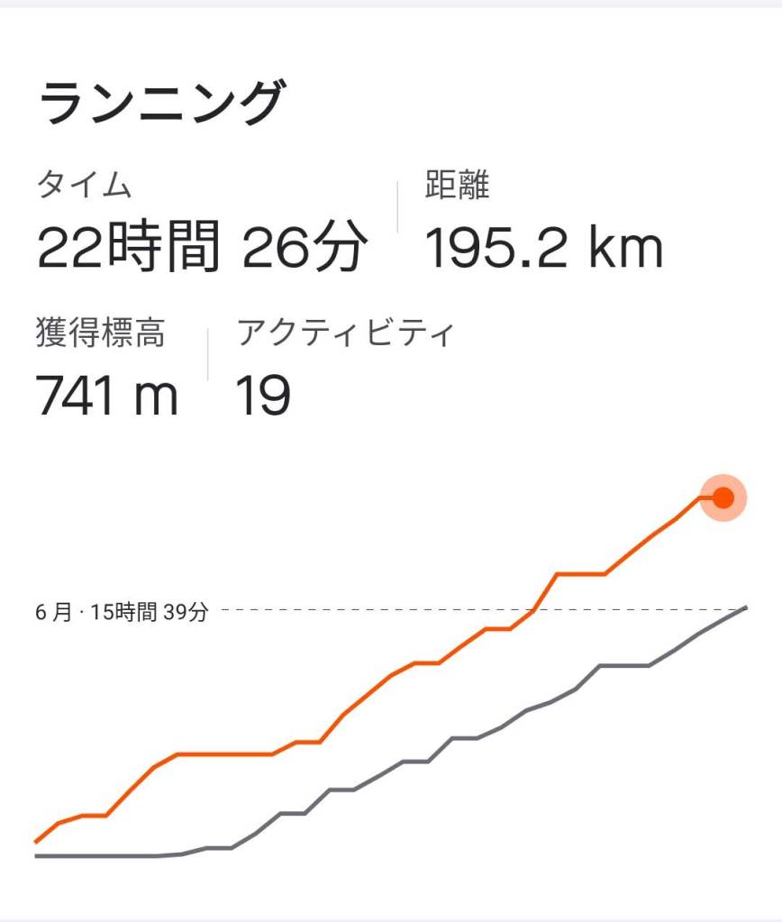 ランニング 22時間26分 195.2Km