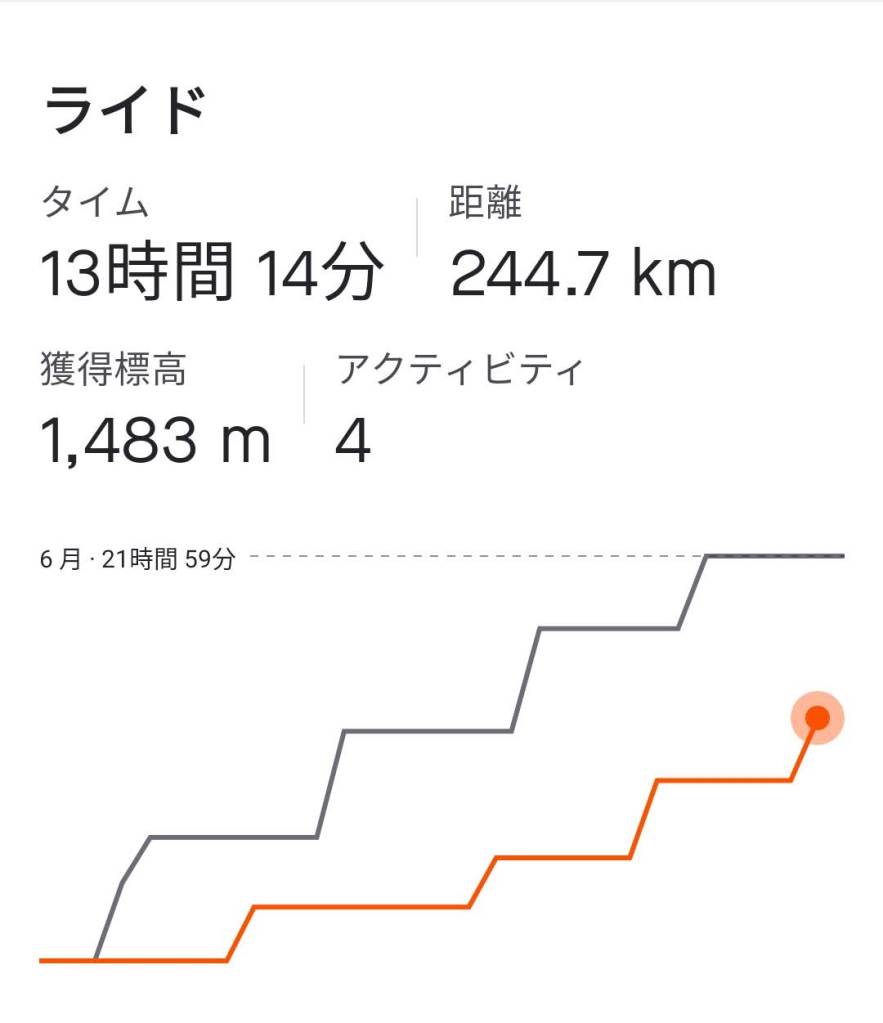 自転車 13時間14 分 244.7Km