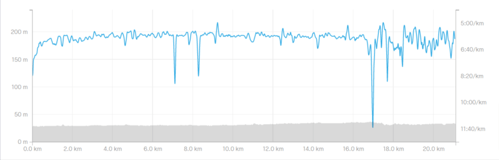 本日北風の強い中、11Km走ってなんとかランは200Km達成。