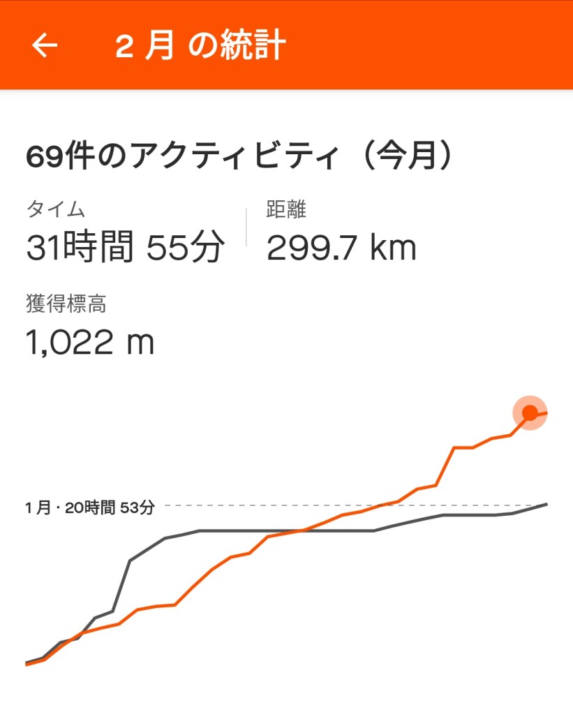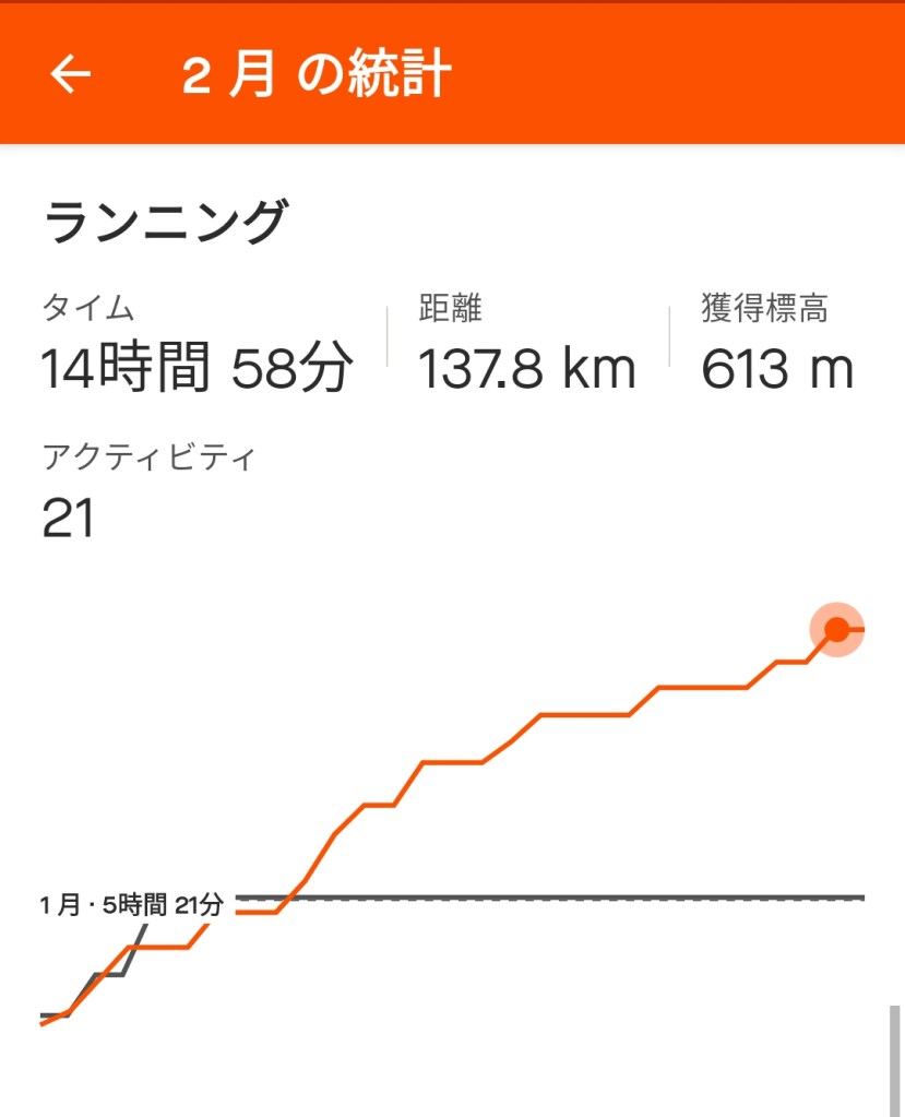 有田みかん海道マラソン参戦、新しくシューズお買い上げもあり。ランニングだけはなんとか低いレベルですが現状維持。1月に大幅に凹んだ自転車ですが、今月も同じく寒くて乗れていません。昨日、久しぶりにジテ通で大阪市内まで約8Kmを往復しましたが、風が強く、特に夜は心が折れそうになりました。