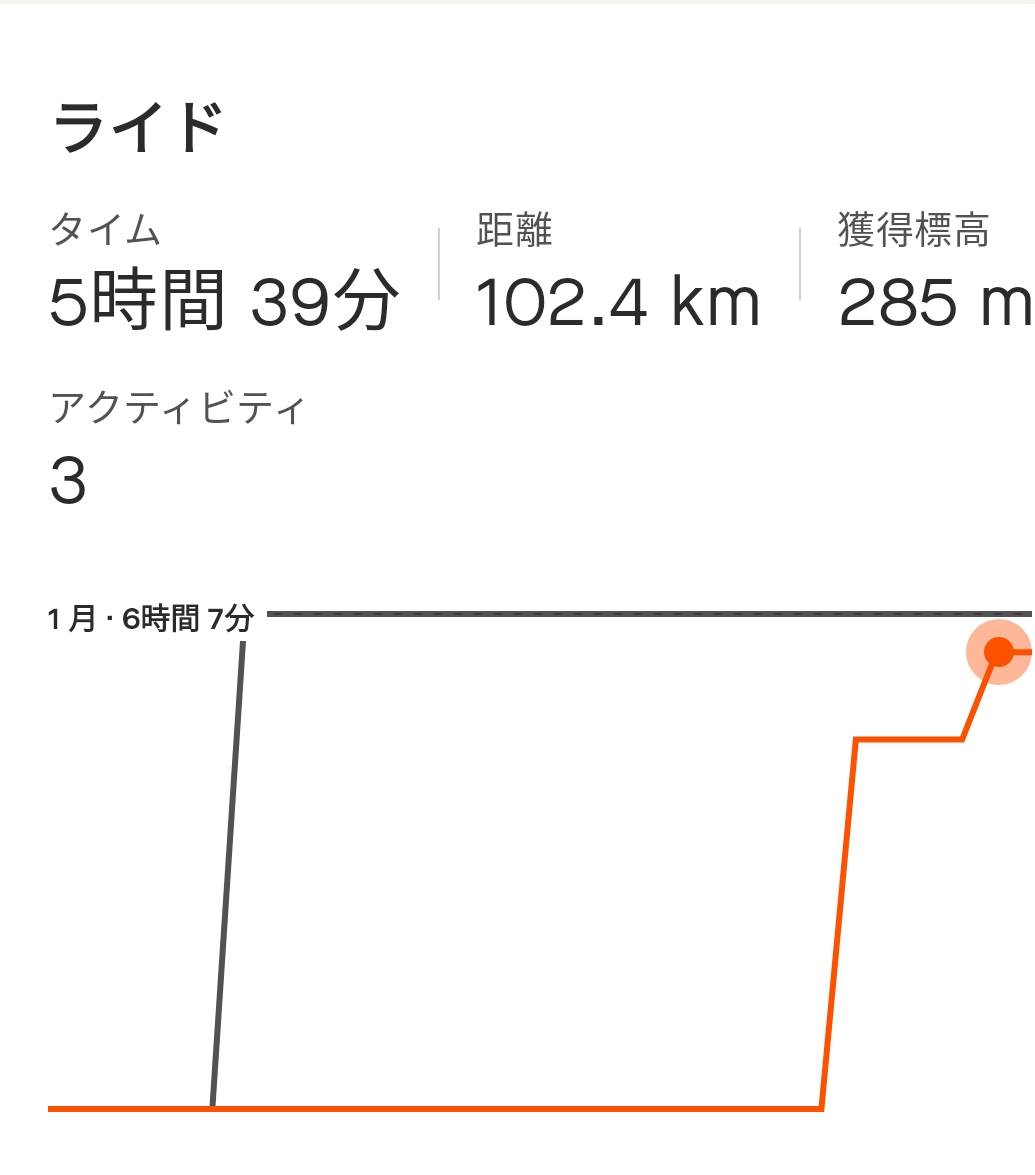 自転車 5時間39分 102.4Km 獲得標高 285m ( 21時間44分 339.3Km 獲得標高 2,517m)