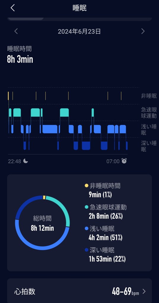 好し悪しの判断はできませんが、COROSにて睡眠のデーターを採取してみました、