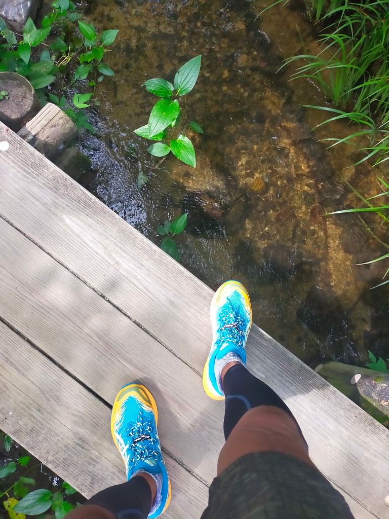 練習不足ですので、その分、準備だけでもと思い、暑さ対策を含め、必携品のリストにないものをお買い上げ。その代表的お買い物は新しいトレランシューズですが、初めて20Km走りましたが、大変良い買い物であったと納得。ソールが斜めに擦り切れたボロボロのシューズでは足を挫いてしまいそうな激坂も幾つもありました。