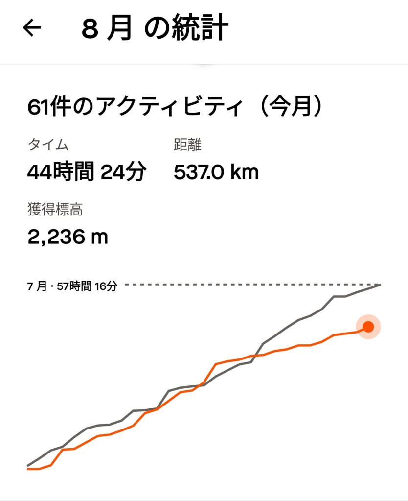 本日のサイクリングは舗装路と非舗装路の比率が80:20位でグラベルライドも楽しめ、酷暑のよる熱中症の恐れもなく、大満足。