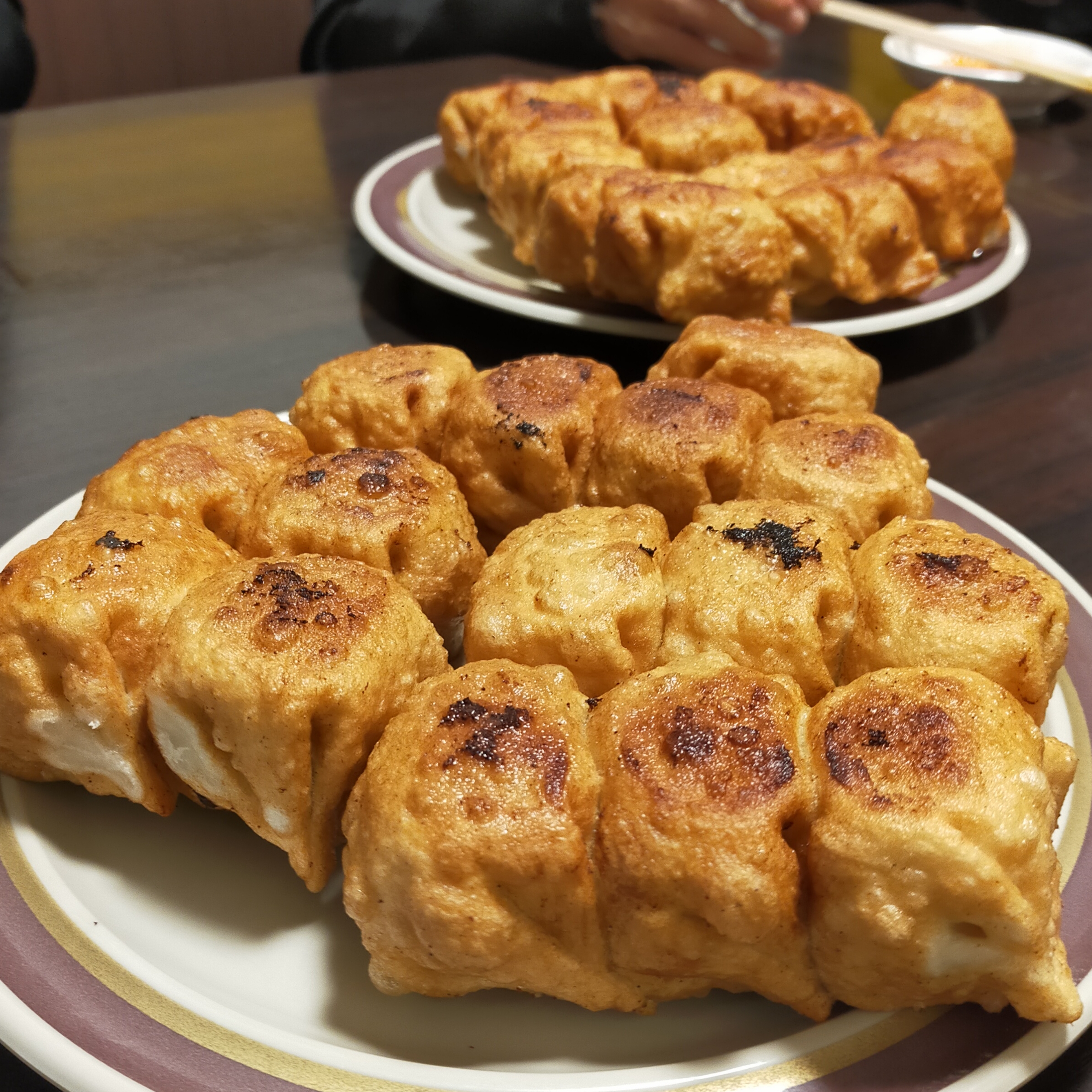 また、ご存じない方も多いかと思いますが、昔、大阪の、千林商店街にもホワイト餃子なるものがあり、中高生の時に足繫く通った思い出があり、現在、大阪では味わうことができないB級グルメで、この懐かしい味を求め、その派生?暖簾分け?同じ流れの第七ギョーザなるお店に行ってきました。お店には約100台?対応の広い駐車場があり、お店は1階がカウンター席、2階には沢山の個室が並んでいて、一度に200~300人位の客席が稼働可能な大店舗でした。お味は当時のままとい云いたいところですが、当時はもう少し油の揚げたて感が強く(目の前で調理するカウンター席のみだったためか?)アツアツといいながら食べていた記憶があり、大人になって食感がブレてきたのか、感動に浸ることはないものの、大変美味しく頂きました。