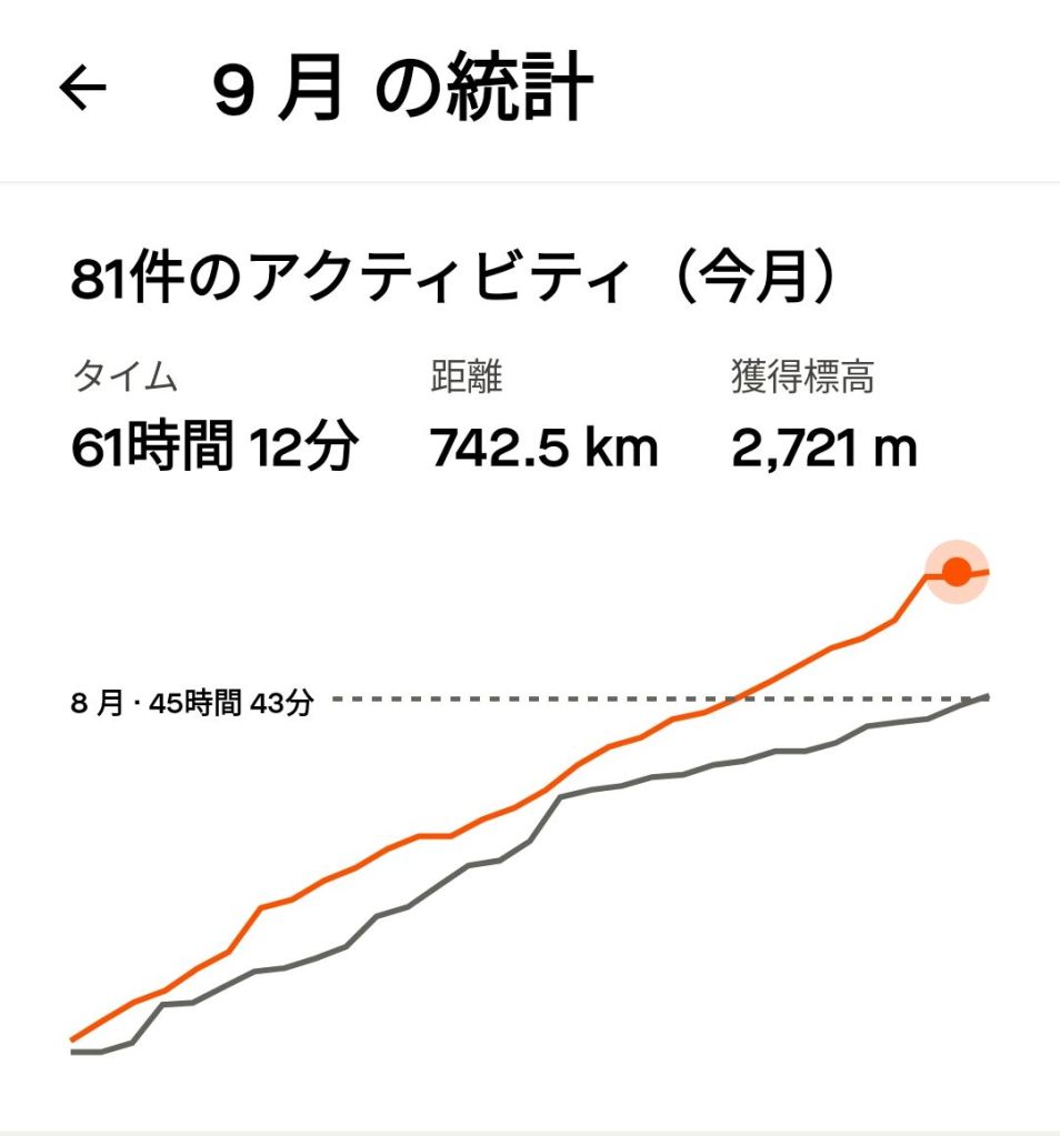 9月の総運動時間 61時間12分