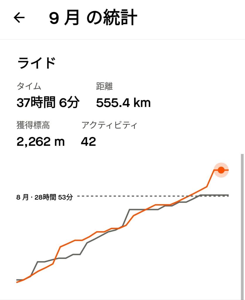 自転車 37時間6分 555.4Km 獲得標高 2,262M ( 28時間53分 425.3Km 獲得標高 1,979M)