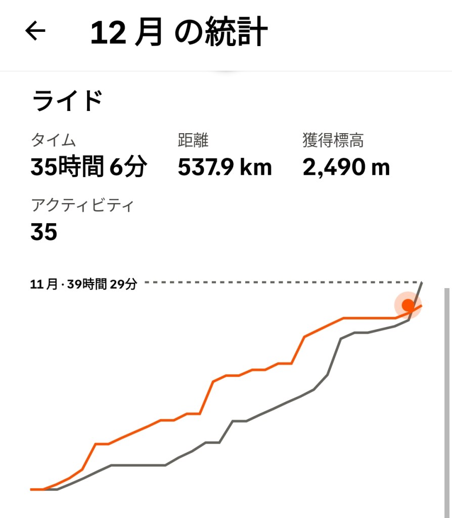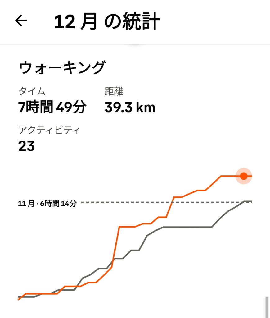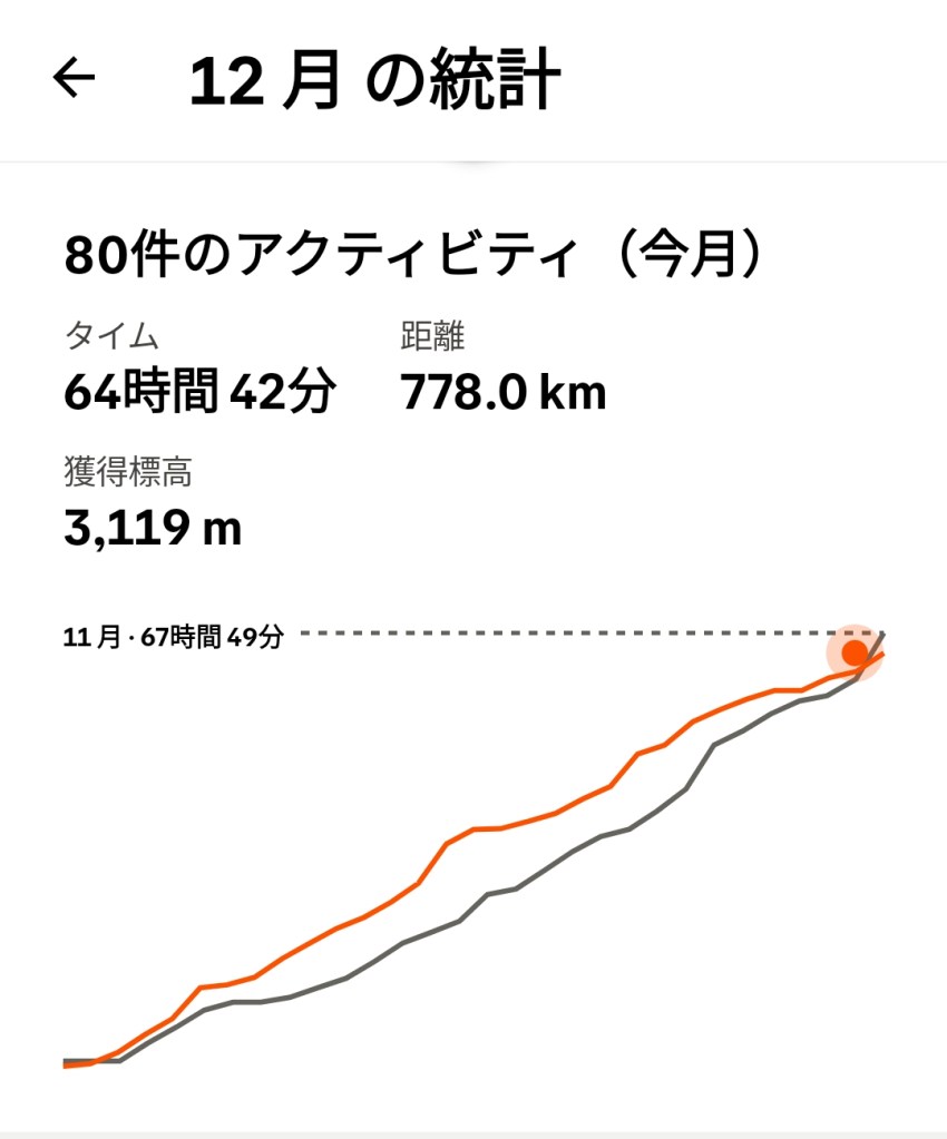 最終日まで先月実績を上回るペースを維持、今月も総運動時間が伸びるかと思いましたが、詰めが甘かったです。その要因は数日前にご報告したCOROSの年間データ比較で、既に昨年実績を上回ることが確実でしたので、そこから急激にギアがシフトダウンしてしまいました。