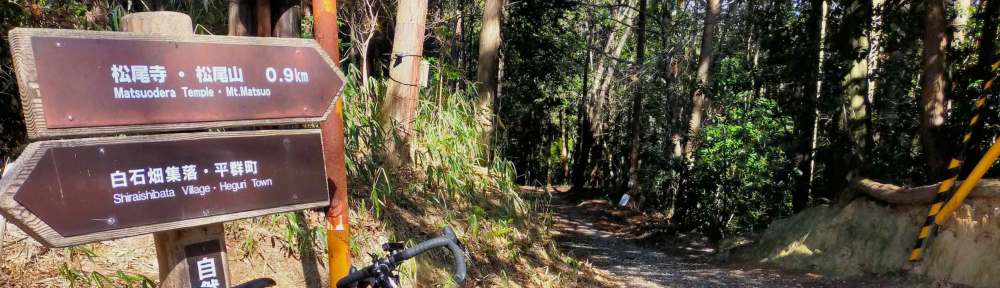 グラベルですし、、、と山の中を進みますが、途中から歩きで松尾寺に到着。この時点では、まだ間違いに気づいておらず、、、、