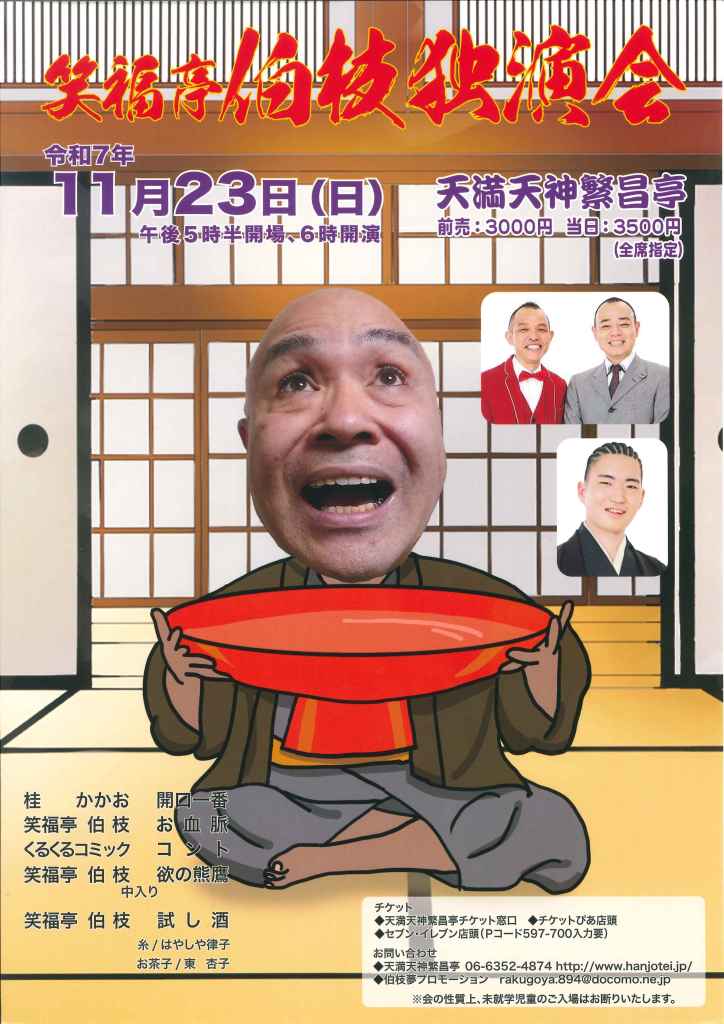 笑福亭伯枝氏の落語を初めて聞かせて頂いたのが10年以上前になりますが、今回も以前にも増して大迫力の高座を堪能させて頂きました。
