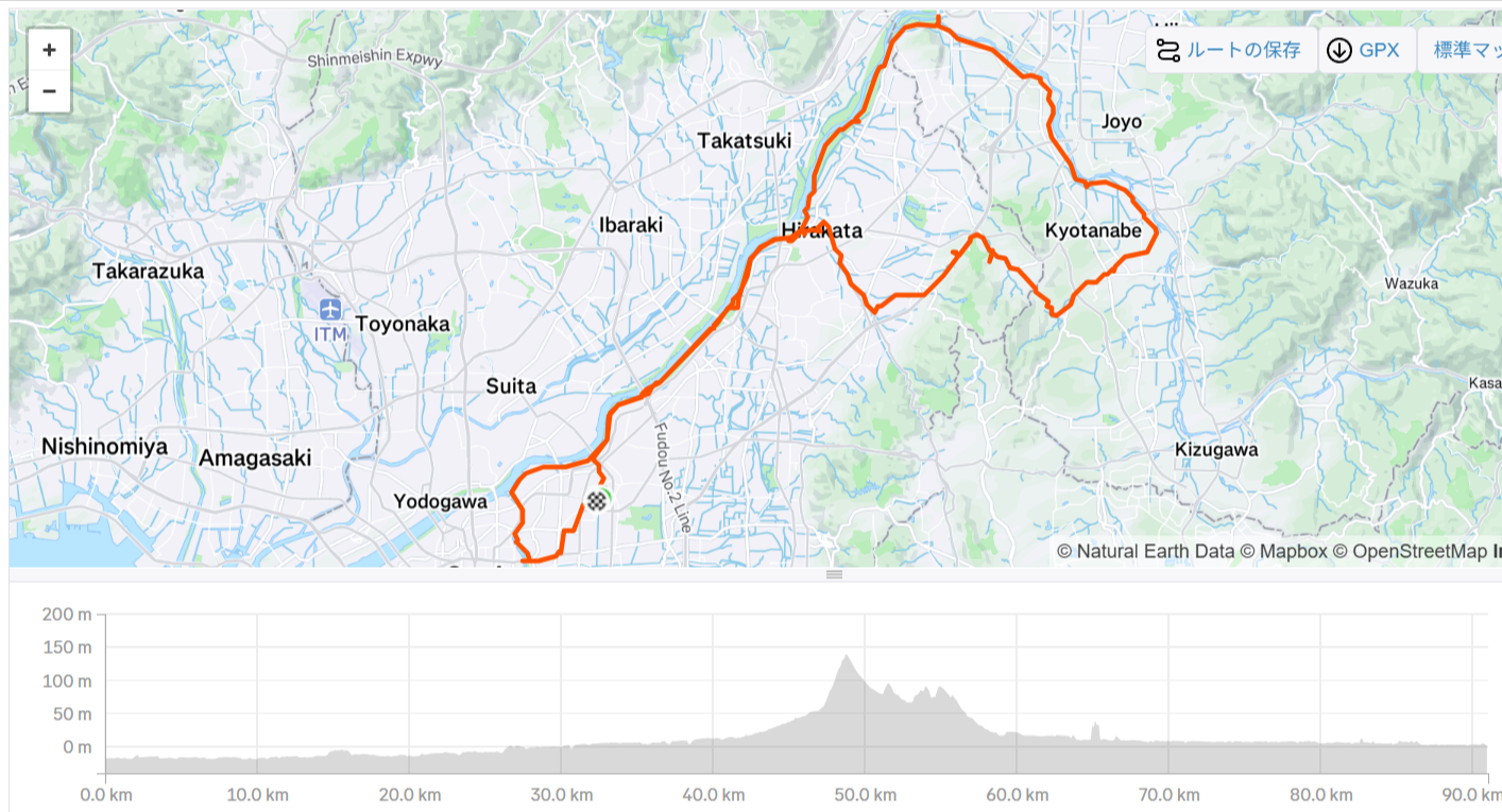 木津川から普賢寺川沿いの細い未舗装路を発見。何度か通ったことがあったなぁと思いながら観音寺の横を通り、71号線で枚方(津田山手)迄戻り、以前から気になっているスーパー銭湯の近くのコンビニで補給食+コーヒー休憩。ガス欠寸前でした。