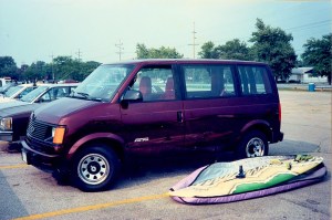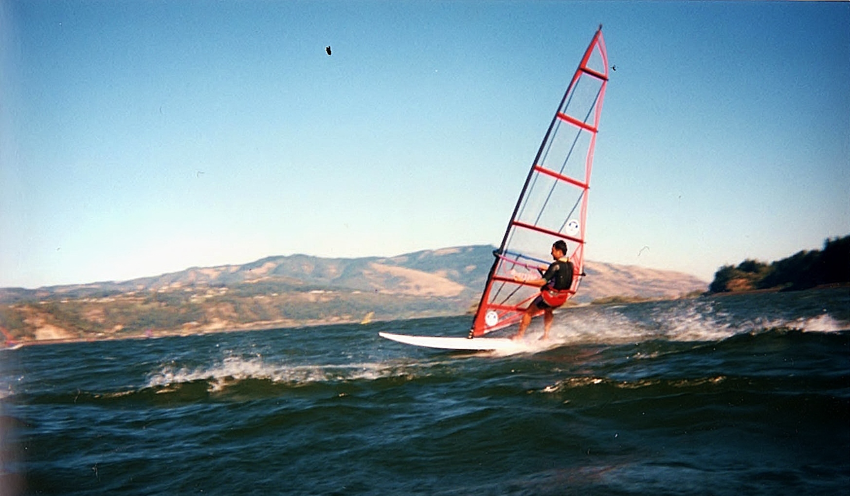 その後、現地事情を調査、車で1時間程南下したインディアナ州のWolf Lake をホームゲレンデとすることとなります。ここはミシガン湖からの北風の影響を受けるものの、フラットで流される心配もなく、同僚のUさんという仲間にも恵まれ、ここでも楽しいウィンドライフを満喫することとなりますが、11月から4月までは生命の危機にさらされる極寒で、ウィンドサーフィンを楽しむ人は皆無となります。 ある日(サンクスギビングの週末だったと記憶しますが、、)、暇な私はついつい好天、強風という天気予報を信じ、いつも通りWolf Lakeへ、、、するともう一台ウィンドサーフィンを積んだ車が来たので、遠目から見ていると、なんと車から日本人が降りてきました、、、、、