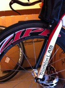 見逃してはいけないのは、Bikeのフォークに小さいながら日頃お世話になっているTriathlon LABのロゴも入ってます。
